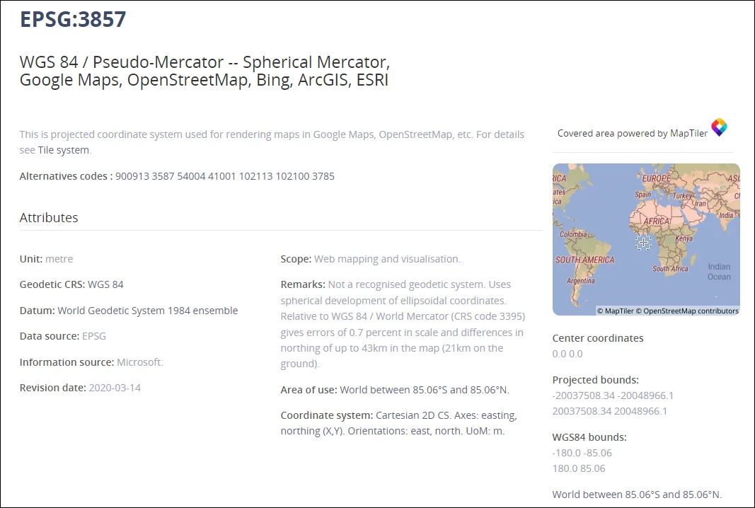 EPSG负责维护全球的坐标系统,虽然EPSG不是一个强制的标准,但是因为有ERSI、Google、Microsoft和W3C等大型公司组织的使用加持,所以对于后面进入行业的GISer和开发者而言,该标准有一定的权威性和方便性。