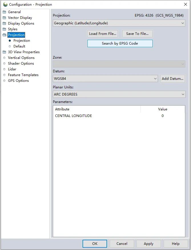 在Global Mapper中的使用方法也是类似,可以通过搜索EPSG代码选择相应的坐标,进而完成坐标系的转换,首先点击Search by EPSG Code按钮,如下图所示。