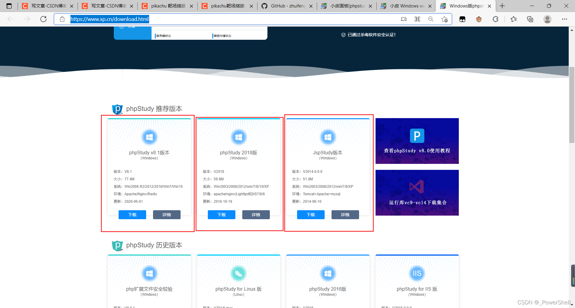 3. jspstudy版本也可以先下载,在后续sql-labs靶场里面会用到。