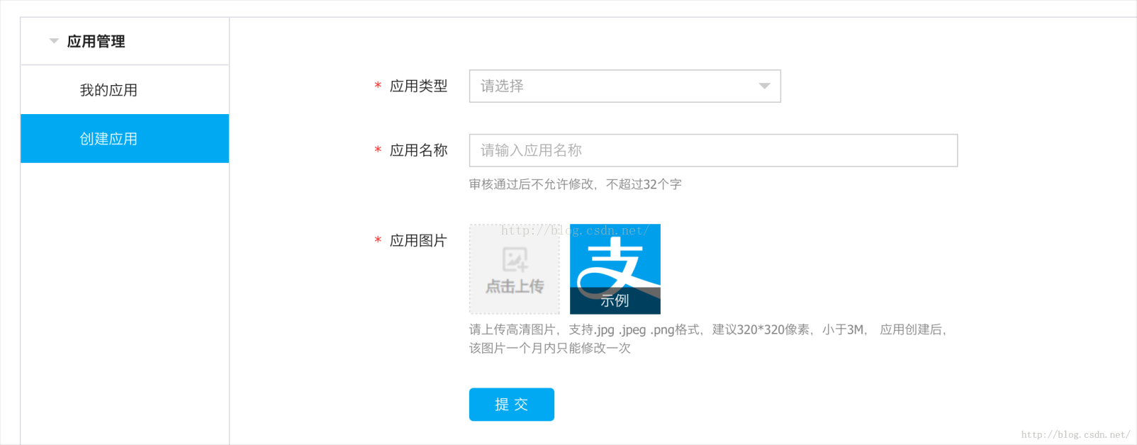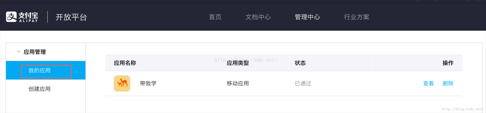 在https://openhome.alipay.com/platform/createApp.htm页面,创建一个应用