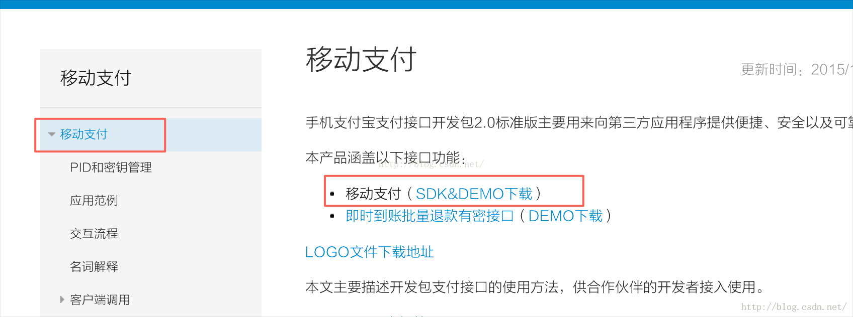 到文档中心,查看移动支付对应的文档,文档地址:http://doc.open.alipay.com/doc2/detail?treeId=59&articleId=103563&docType=1