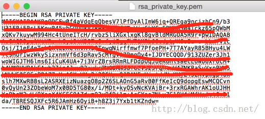 用记事本方式打开它,可以看到-----BEGIN RSA PRIVATE KEY-----开头,-----END RSA PRIVATE KEY-----结尾的没有换行的字符串,这个就是原始的私钥。