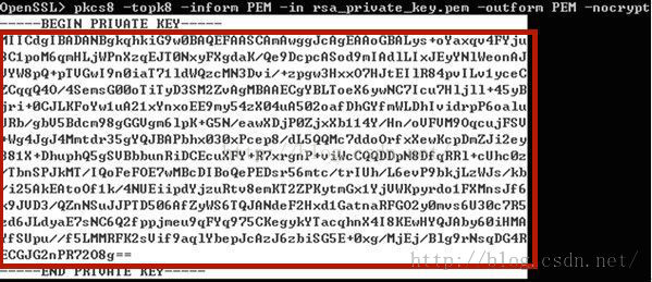 得到生成功的结果,这个结果就是PKCS8格式的私钥,如下图:
