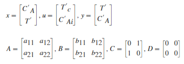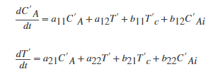 下面的微分方程表示了涉及放热反应的连续搅拌釜式反应器(CSTR)的线性化模型: