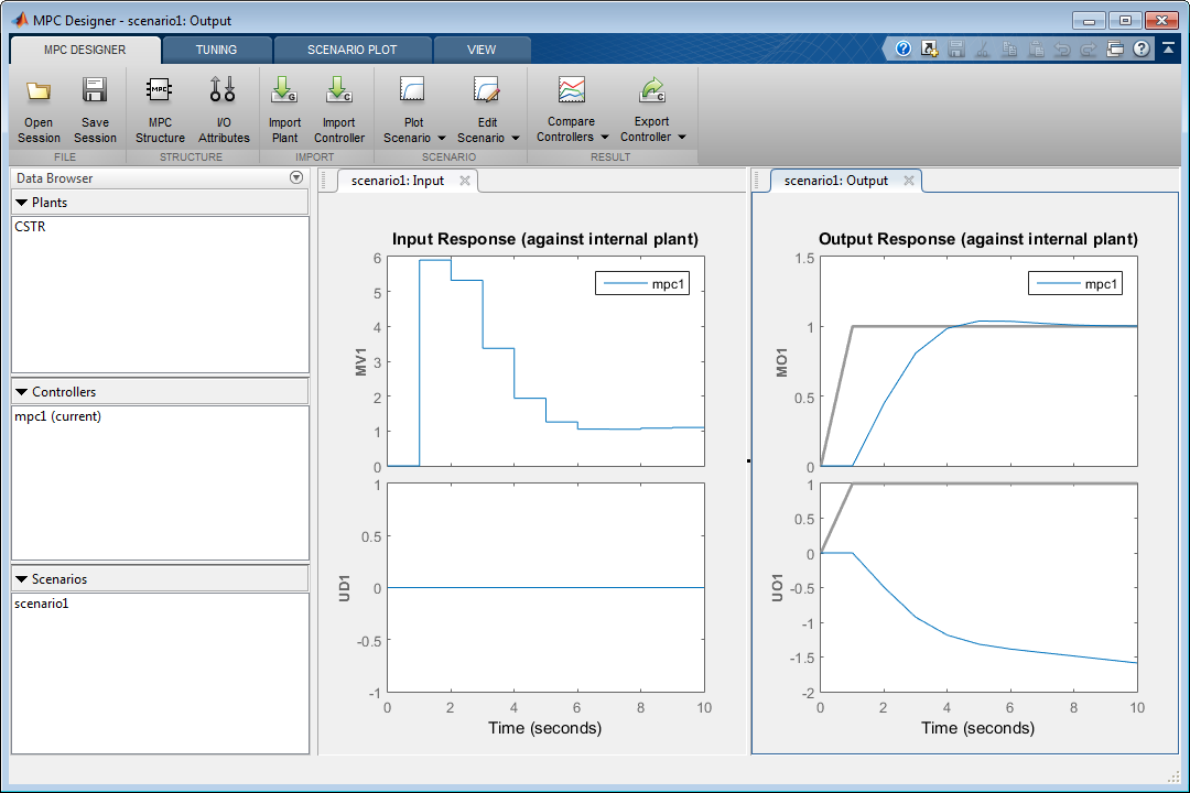 在 MPC Designer 选项卡的 Scenario 部分中,单击Edit Scenario > scenario1.。