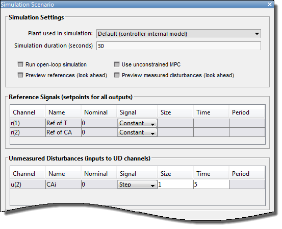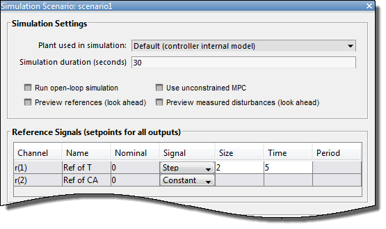默认的场景被配置为模拟反应器温度T在5秒内发生2度的台阶变化。