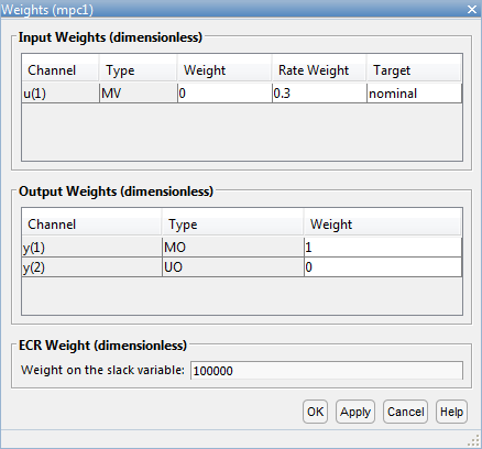 当滑块居中时,这个因子为1;它的值随滑块向左移动而减小,随滑块向右移动而增大。权重因子乘以操作变量和输出变量权重, 并从weights对话框中除操作变量速率权重。