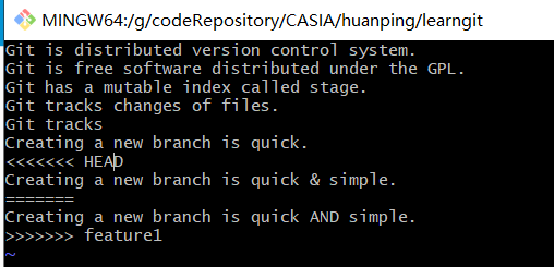 当Git无法自动合并分支时,就必须首先解决冲突。解决冲突后,再提交,合并完成。解决冲突就是把Git合并失败的文件手动编辑为我们希望的内容,再提交。
