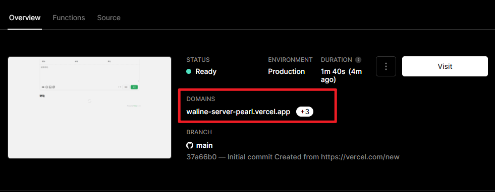 等待其构建结束,然后记住 DOMAINS 中的域名地址: