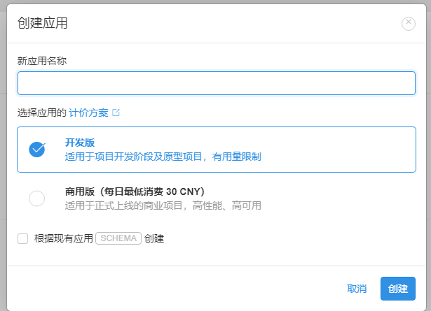 在这里填写你的应用名称,名称可以自己定义,然后,下面选择开发版 点击创建。