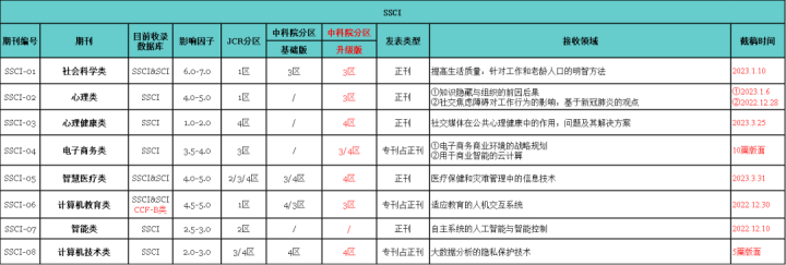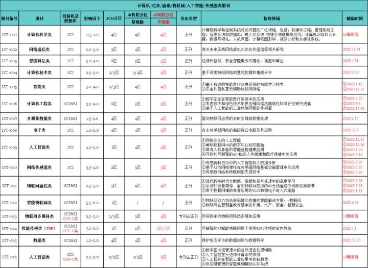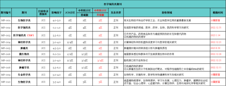 本次更新我们对于期刊的征稿时间做了标注,期刊版面有限,部分期刊将在12月截稿,相关领域作者请务必注意投稿时间!