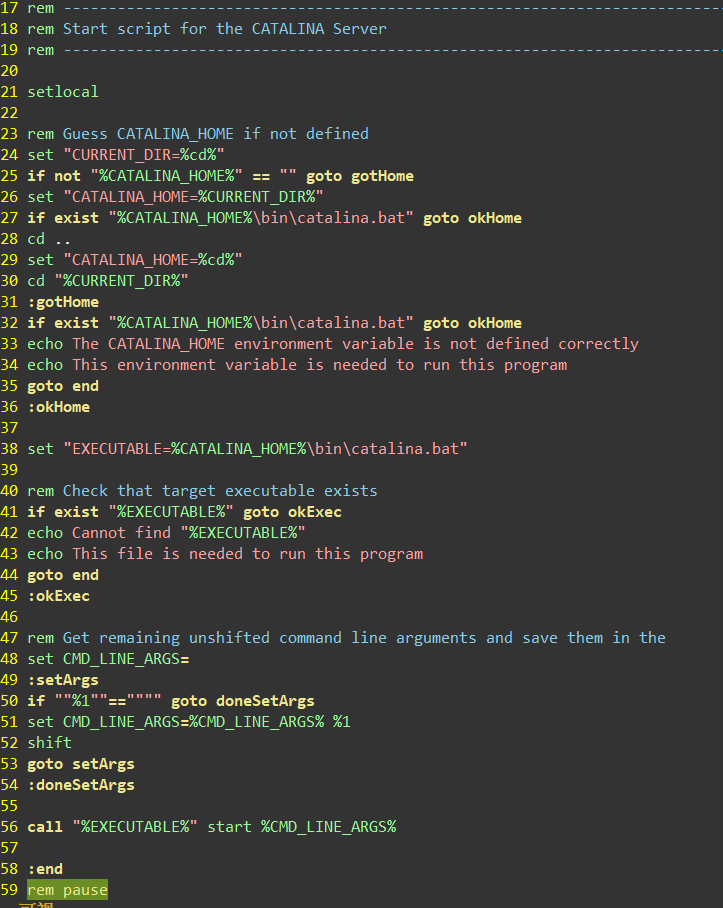 若启动失败可在 startup.bat 末尾加上 pause 使其打印出错误信息,启动成功再加上rem将其注释,或者使用 方法二