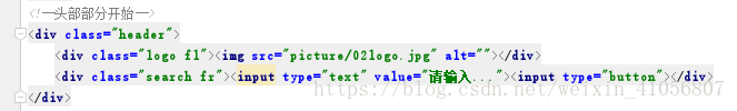 分析:头部有一张图片和一个input输入框还有一个按钮+下面的通栏