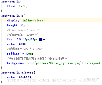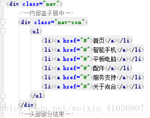 分析:有一个ul里面有6个li,鼠标滑过的时候文字颜色改变(hover),ul在整个通栏nav中用一个nav-con这个命名的div包住,使其居中显示。