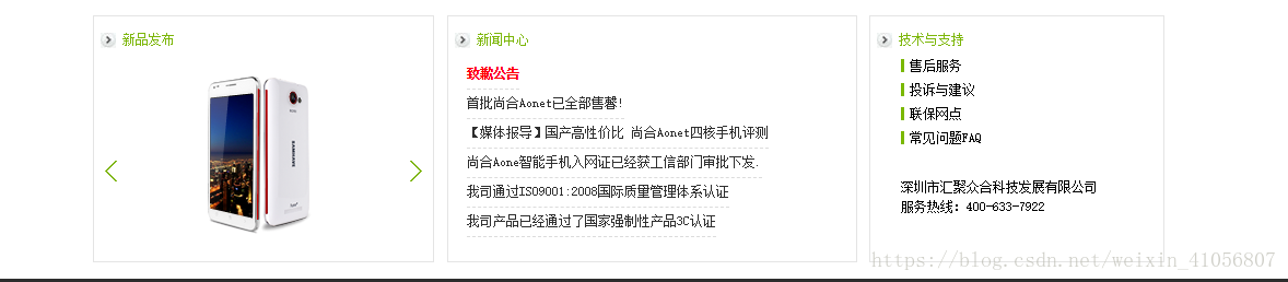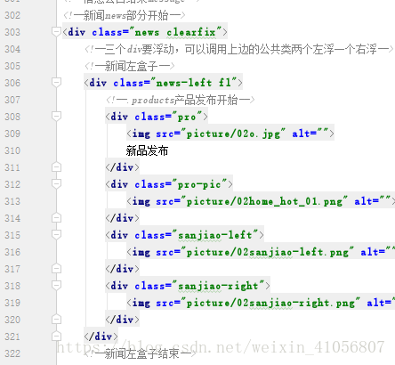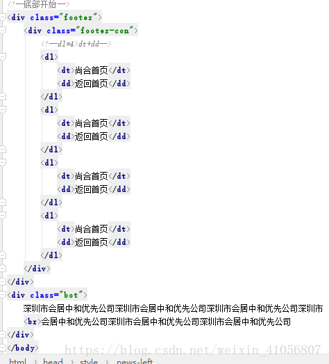 注意:这里在news的部分用到一个类来清除浮动,这样保证news部分和底部不发生重叠clearfix