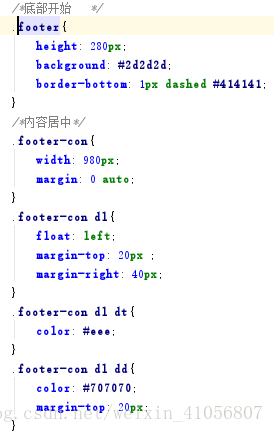分析:有上下两部分,一个是dl dt dd设置列表的标题和虚线下的居中文字