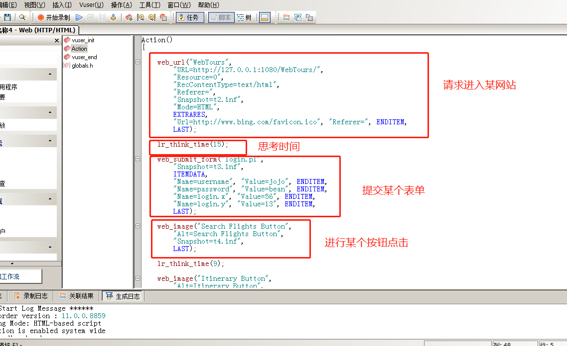 之后就会弹出配置的浏览器进行点击录制,loadrunner会记录你的操作。