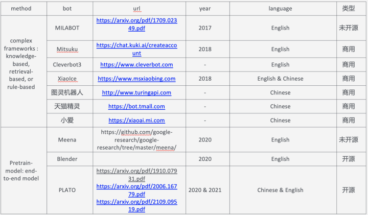 本文从关注中文领域聊天的角度出发,且目前效果较好的基本上就是百度的PLATO,所以下面介绍paper的时候,PLATO的笔墨会偏多和篇细一点,其它的paper的一些细节,感兴趣可以去看原论文,都已附上链接。