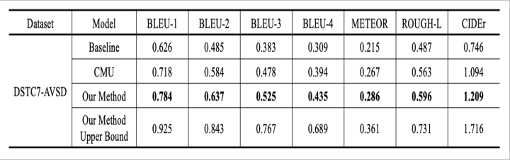 (1)在DSTC7-AVSD最下面的一行是给出了模型的上限,即假设所产生的k个response中最好的那个100% score最高即被选中。说明select部分还有很多可做空间。