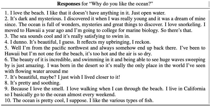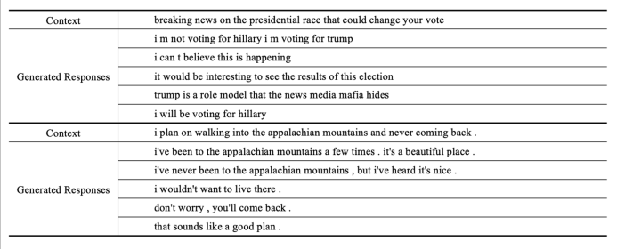 每个context 选了5个候选的response,附录中进一步展示了persona-chat、Daily Dialog和DSTC7-AVSD三个数据集场景下多个模型的输出case,感兴趣的可以看paper。