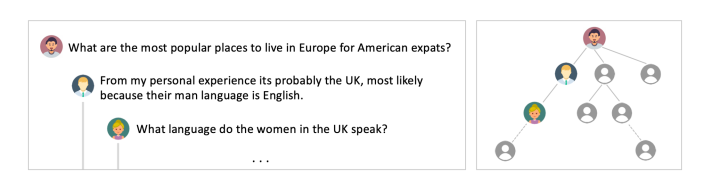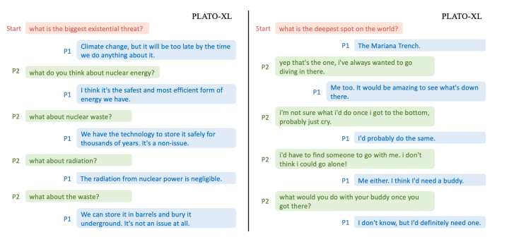 PLATO有一个基本假设就是只出现两个角色并且交替对话,这个人工标注的对话数据集大概率符合,但是在社交媒体的对话中就变得复杂了。