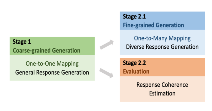 Coarse-grained : 粗粒度的学习,单纯的one-to-one生成模型,学一些通用性的response,缺乏多样性。