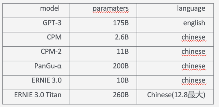 和其它一些大模型比较: