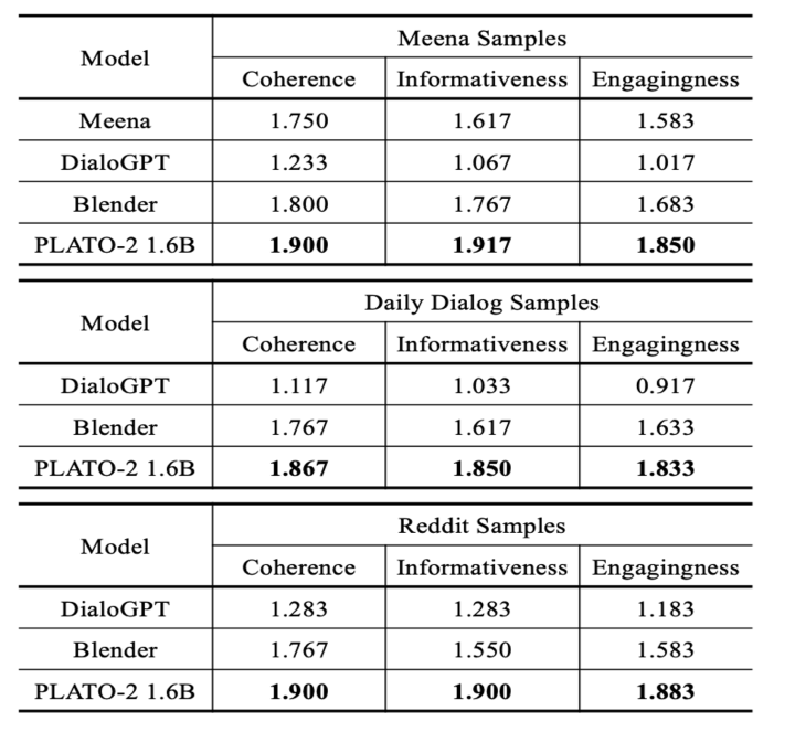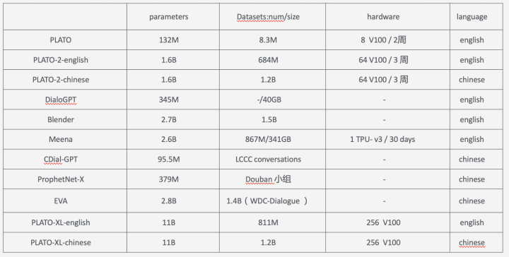 这是PLATO系列的第二篇,DialoGPT ,Meena,Blender 都是使用了更大的数据量,更大的模型进行训练,为此PLATO就想也上一下数据量和参数量。