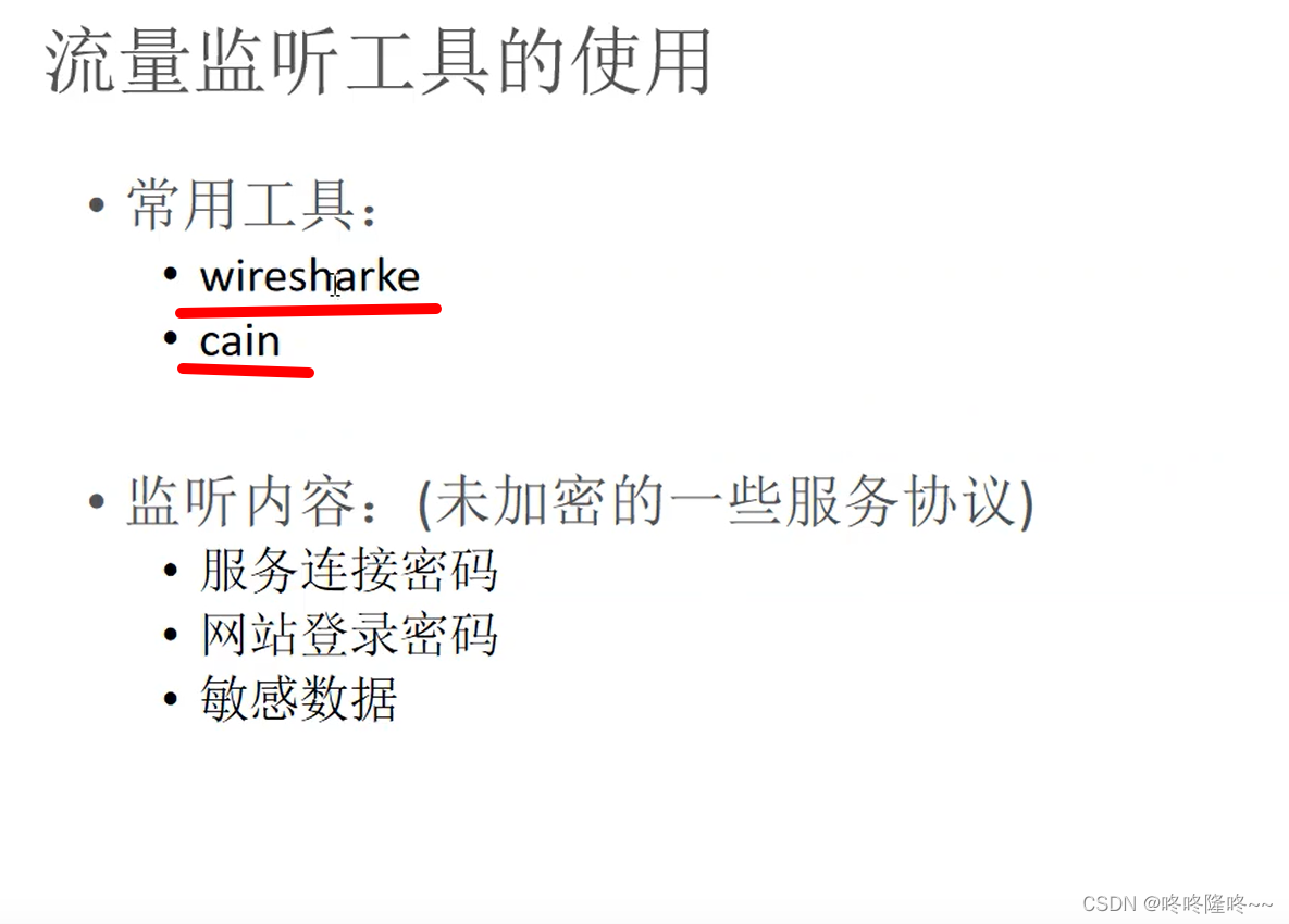 1.网段(可以抓取内网不同网段,进行纵向渗透) 2、抓取密文,分析流量