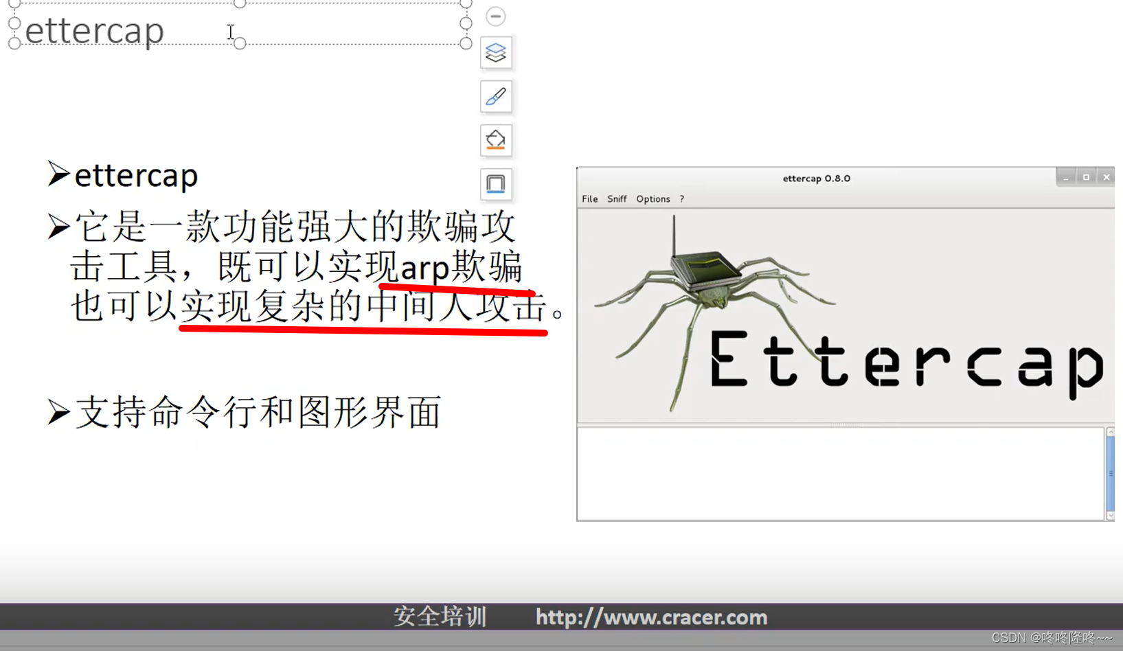 内网走mac地址访问,容易有arp欺骗,中间人攻击。kali中有个工具,强制将https转为http,然后可进行劫持