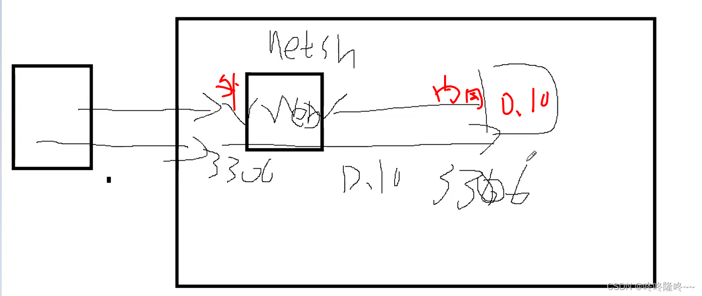 netsh命令端口转发。通过获取web的3306,从而得到内网0.10的3306端口