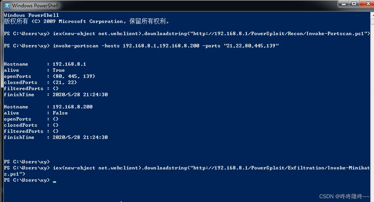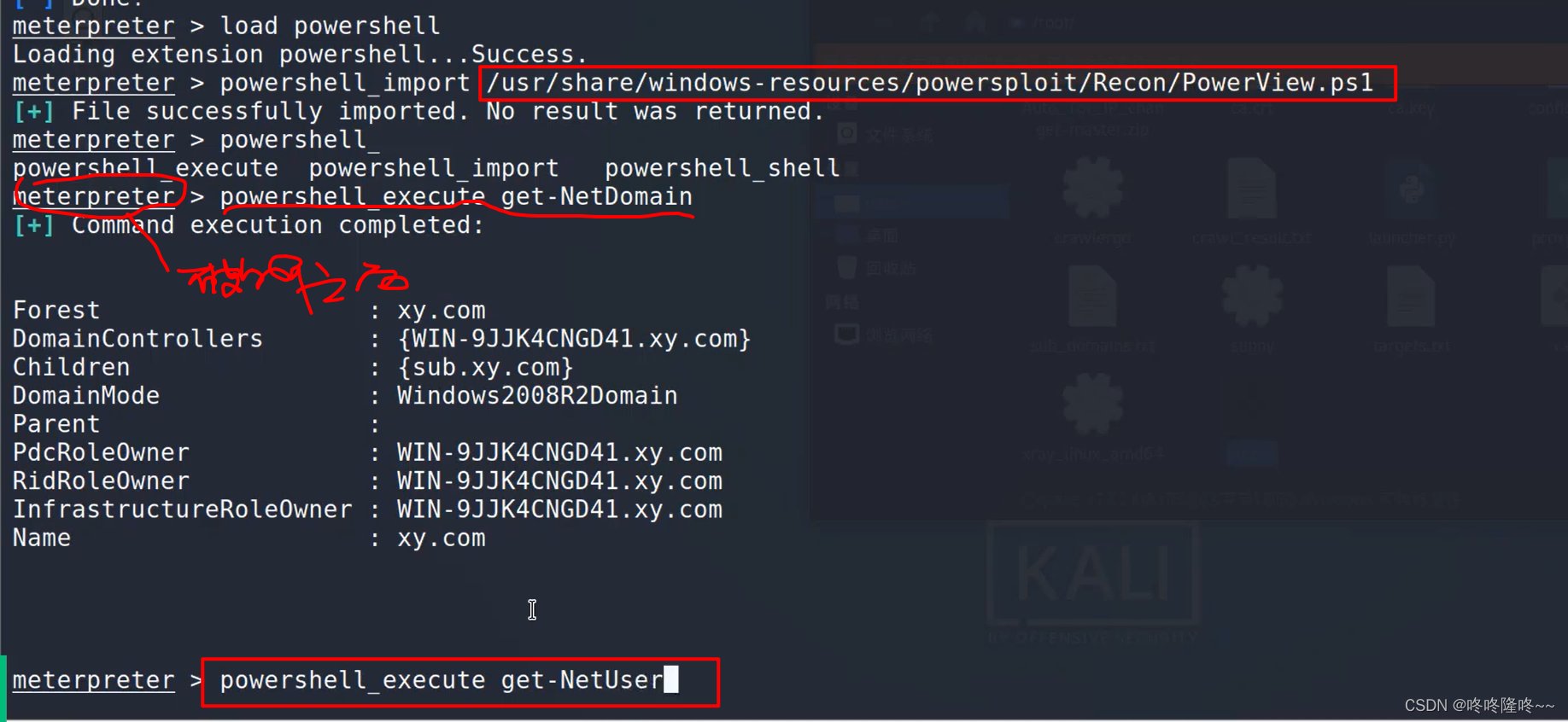 msf的强大,直接包含了这些功能。使用了msf的本地自动加载。不需要那个vps了,但必须在已进入的主机上有PowerView.ps1这个文件,已经上传在哪里