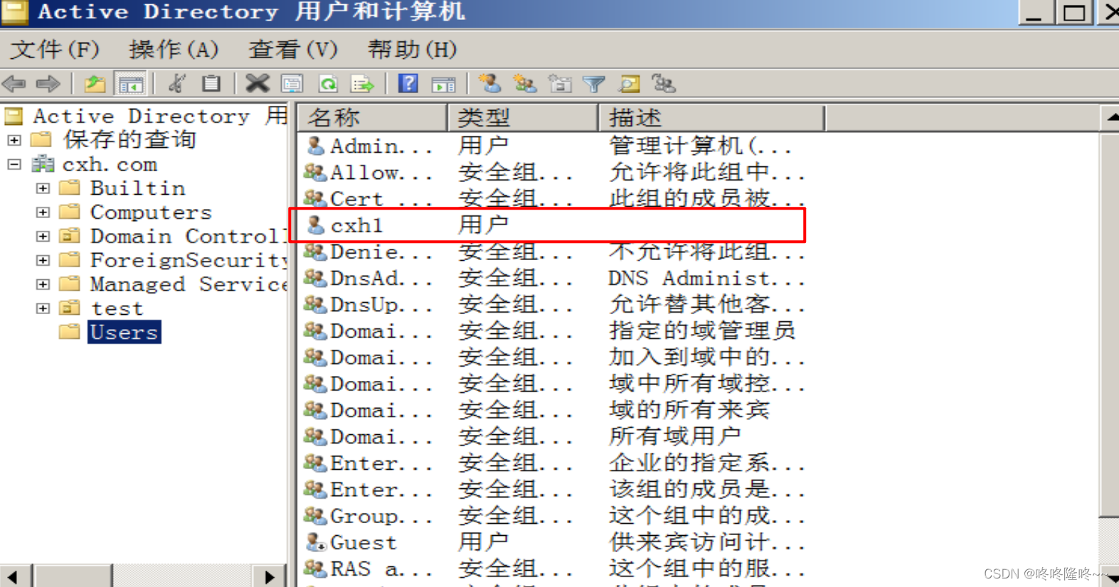 2022.5.10 问题:之前登录win8域控制器检查,发现win7登陆的用户在域的用户中找不到,后来发现,是要在win8下新加一个用户,然后再win7这个域内的电脑上面登录才有的。