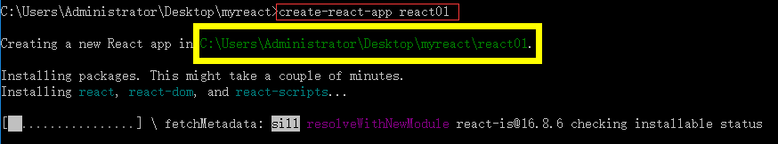 随便建一个react项目工程文件夹,并在文件夹下面cmd:create-react-app 项目名称