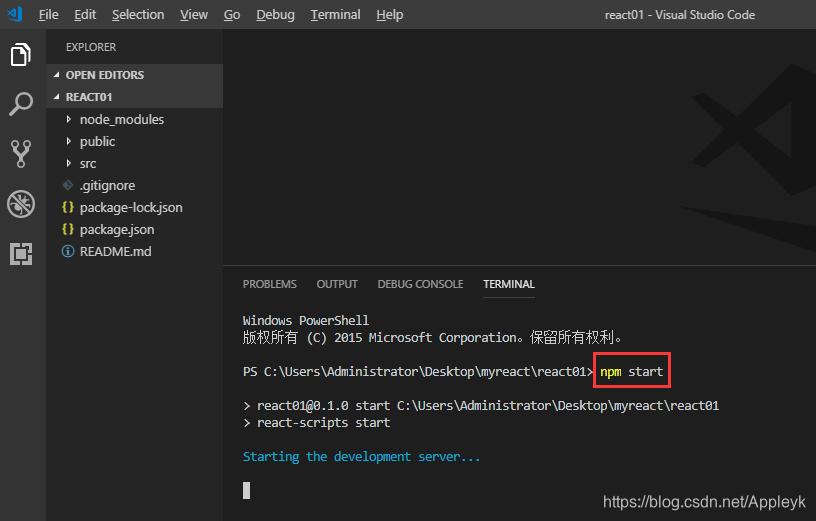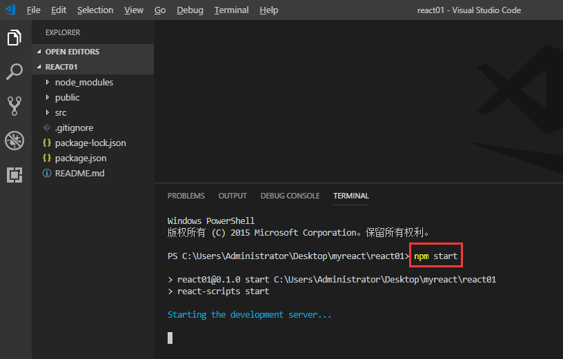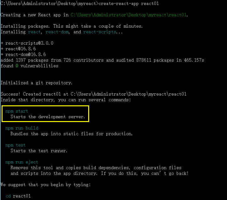 安装完成后,向导会告诉你怎么运行你的react项目