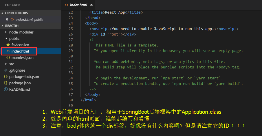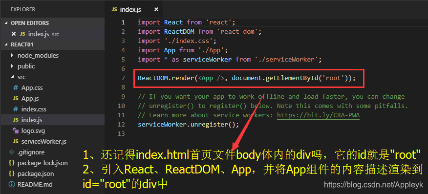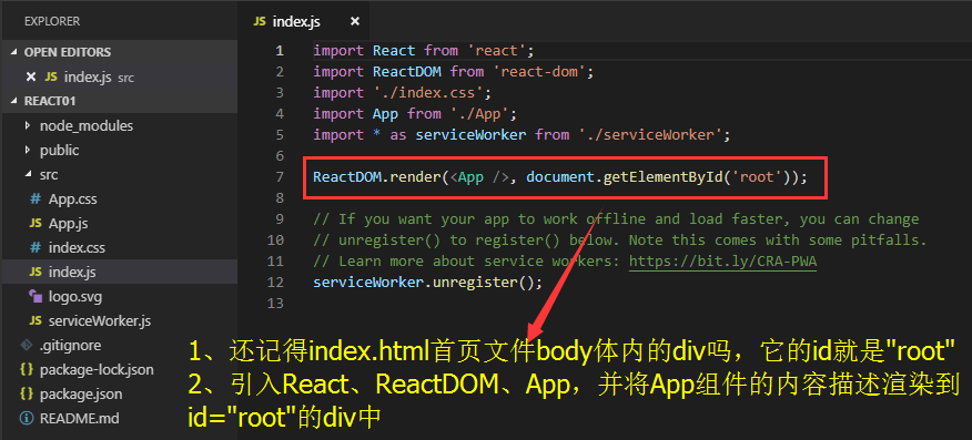 (4)index.js(react渲染组件,将组件的内容描述绑定到制定的DOM上)