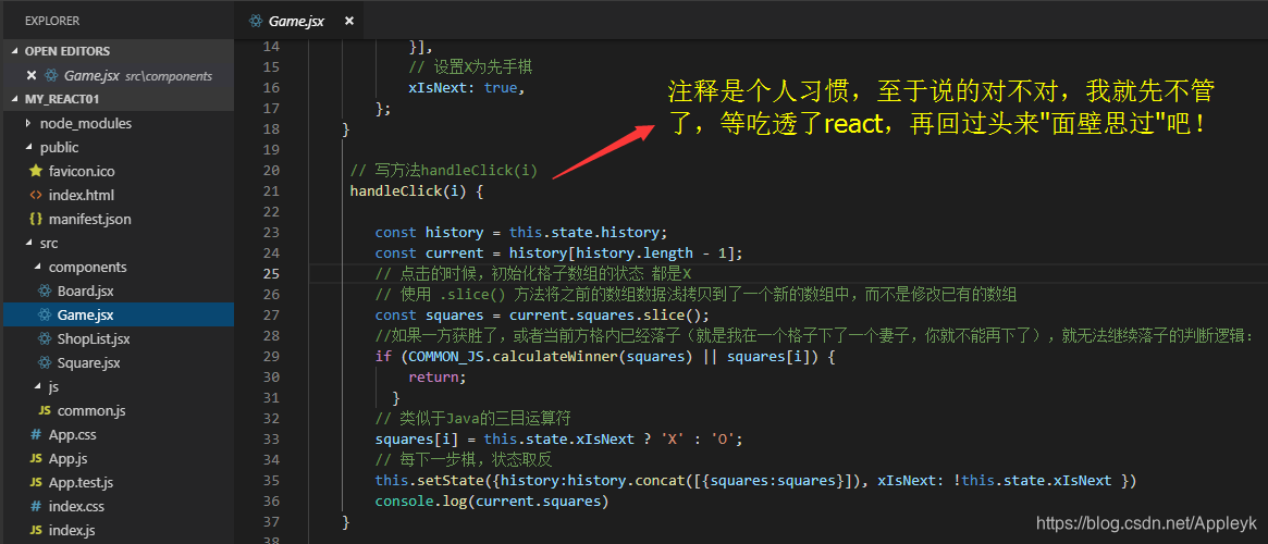 地址:搭建react脚手架,并结合官网的井字游戏教程,初识react