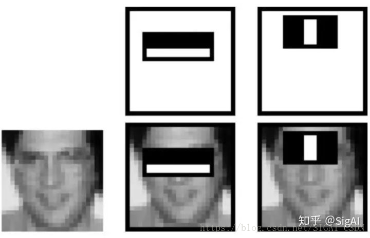 在2001年Viola和Jones设计了一种人脸检测算法[10]。它使用简单的Haar-like特征和级联的AdaBoost分类器构造检测器,检测速度较之前的方法有2个数量级的提高,并且保持了很好的精度,我们称这种方法为VJ框架。VJ框架是人脸检测历史上第一个最具有里程碑意义的一个成果,奠定了基于AdaBoost目标检测框架的基础,所以作为重点和大家唠唠。