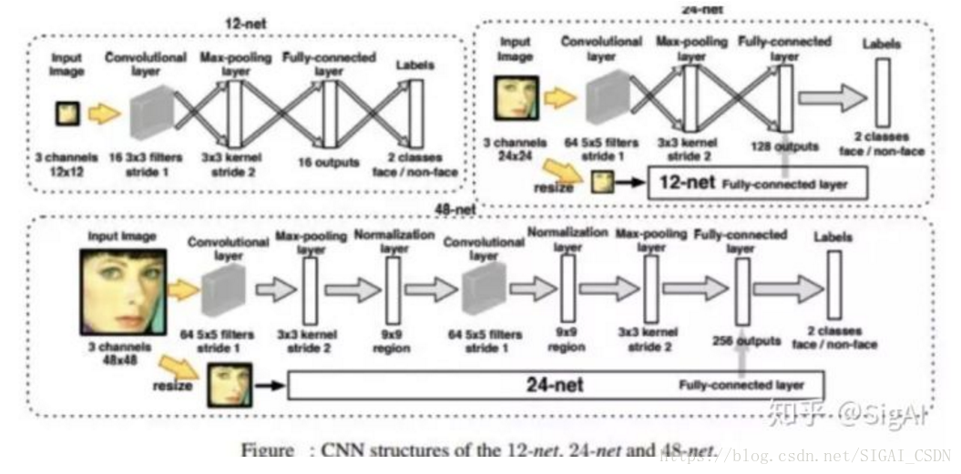 上一阶段proposal生成的候选框已经有较高的召回率,通过训练一个人脸分类和边界回归的CNN可以进一步提升其效果。