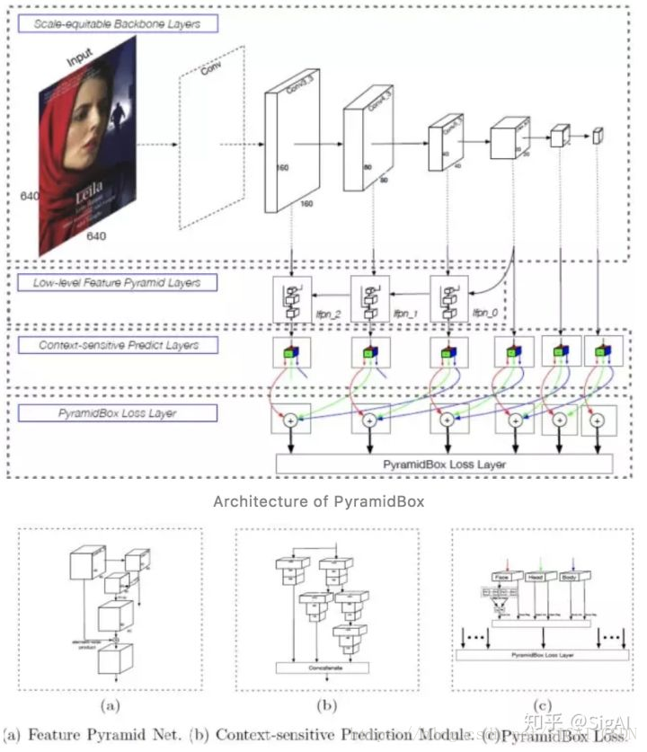 Pyramid Networks ) 来更好地融合上下文特征和面部特征,该方法在一次前向过程中(in a single shot)可以很好地处理不同尺度的人脸。