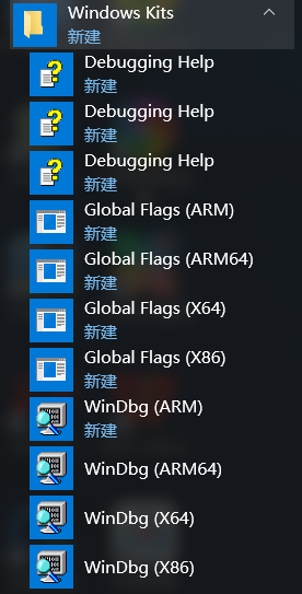 安装完成后,WinDbg在 Windows Kits 目录下。我系统是win10 x64,下面以此举例。