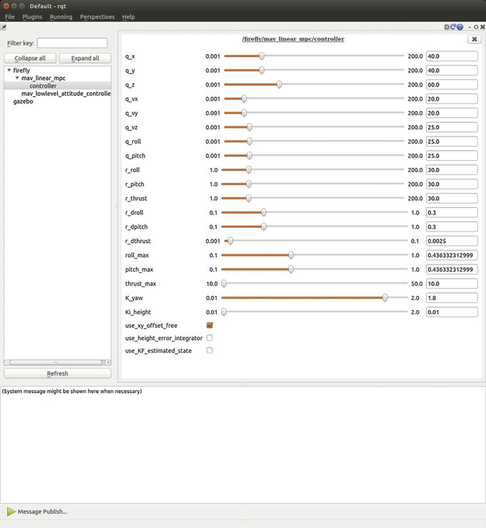 非线性控制器的ROS集成遵循先前介绍的线性MPC的相同准则。 可以在此处找到先前介绍的控制器的开源实现 https://github.com/ethz-asl/mav_control_rw。