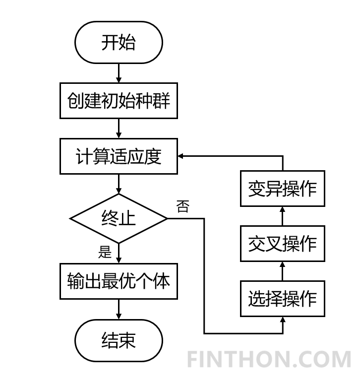 - 确定种群的大小、选择、交叉和变异的方式、交叉和变异的概率,判断终止条件(可以是某一阈值或者是指定进化的代数)。