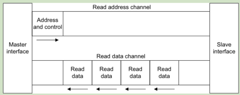 - 读数据通道:读数据通道承载着读数据和读响应信号包括数据总线(8/16/32/64/128/256/512/1024 bit)和指示读传输完成的读响应信号;