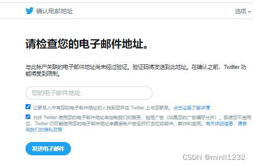 1我的推特账号前段时间被限制了,让我验证邮箱,过12个小时就能解封我所有的功能。