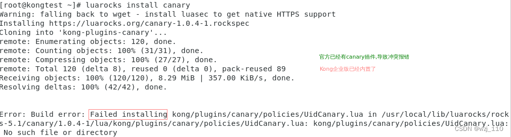 +++++++++++++ '分割线' +++++++++++++ 说明: 企业版的'kong'自带了'canary'灰度插件,'不授权'不能使用,导致安装'第三方'冲突
