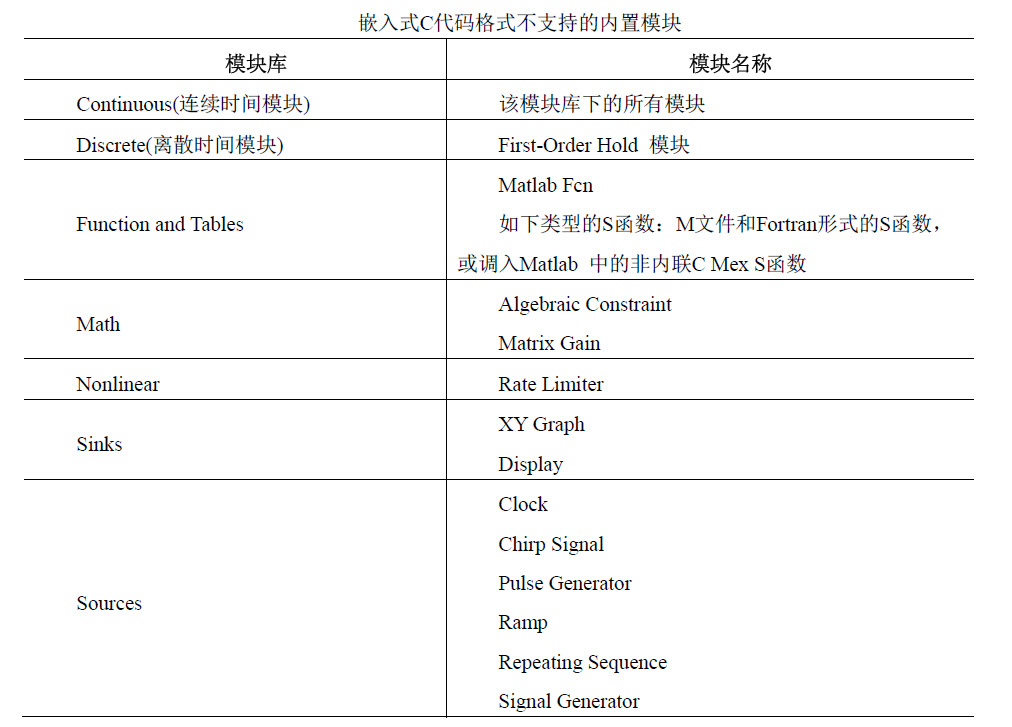 1.2 嵌入式实时目标(ERT)不支持的模块