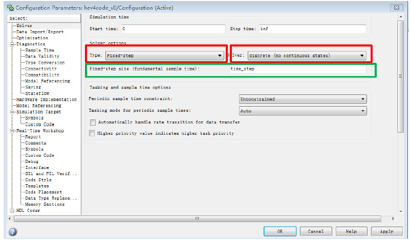 1.1 RTW嵌入式代码生成器程序以离散时间运行,用户的模型必须使用如下Solver选项: