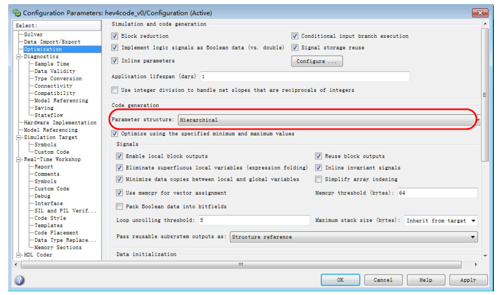 (2) 点击对话框的Optimization 面板,Parameter structure 选择Hierarchical,其他选项如图