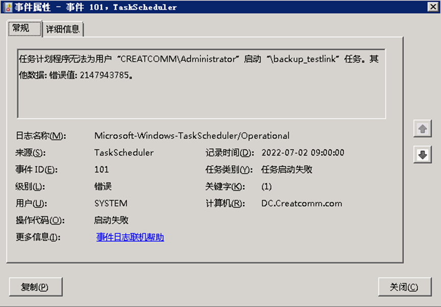 在win server服务器端,设置定时任务后,总是执行失败,提示错误值为:2147943785